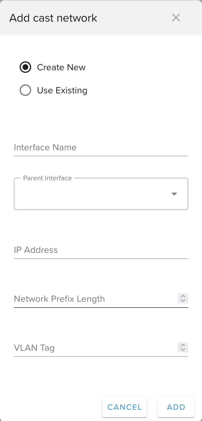 IP Address: If the Cast server will be used as the DHCP server for the network (see Advanced Networking), then choose the first IP from the valid host IP range. If a separate DHCP server will be used, then insert the IP address reserved for the Cast server for the network to be configured